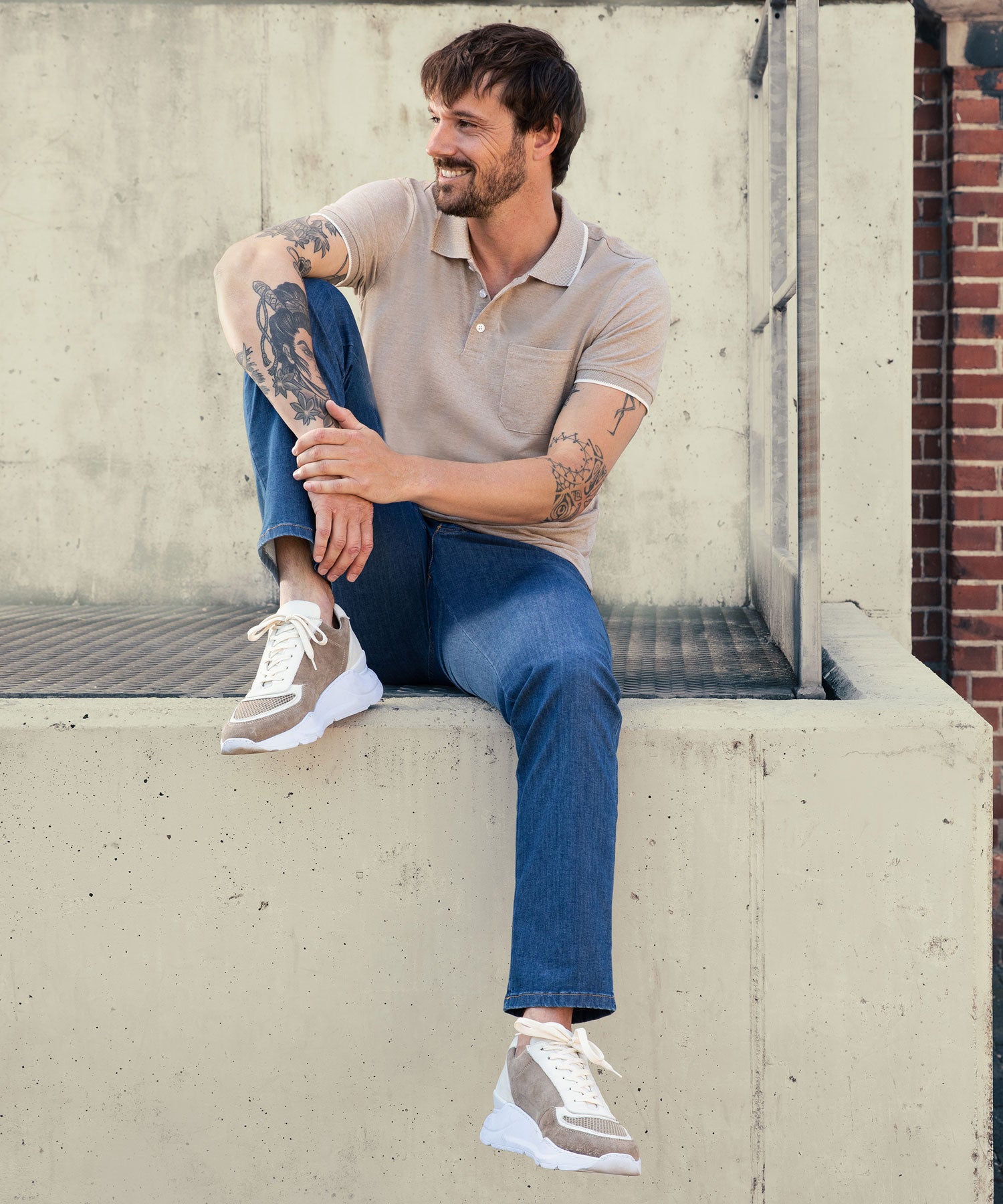 "Cool color, super comfortable to wear in warm weather and the mobile pocket can even be used while lying on the sofa. The favorite jeans for every man. Whether for a barbecue, bike ride, a walk with the dog or simply for RELAXING on the sofa"